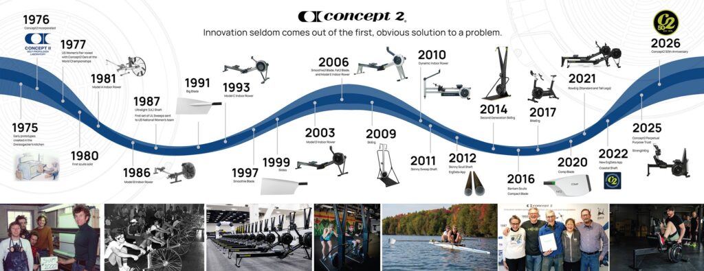 Desde o lançamento do icónico Modelo A, em 1981, até às atuais máquinas equipadas com monitores PM5 de alta tecnologia, a Concept2 continua a ser a escolha número um pela sua engenharia simples e eficácia incomparável.